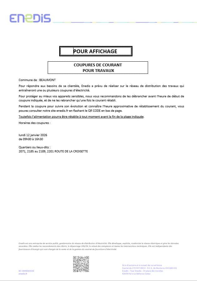 Coupure de courant – 12 janvier 2026